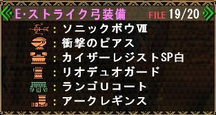 E・ストライク弓装備 逆襲クエストのソロ攻略用として考案した弓装備だよ!
