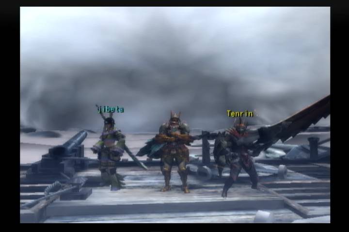 青、黄、赤、緑っぽい色の防具っぽい装備のPTが組める特殊陣形。ラオシャンロン戦限定。